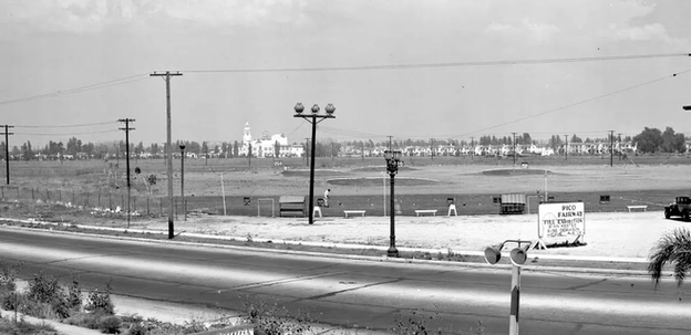 The Twin Cities Company purchased the approximately 90-acre parcel of land which would become Olympic-Beverly Plaza in 1921 or 1922, around the time this area (along with the Fairfax Park land) was annexed to Los Angeles in February 1922. The parcel was roughly bounded by Country Club Drive (W. Olympic Boulevard) on the north, S. Crescent Heights Boulevard on the east, Pico Boulevard on the south, and La Cienega Boulevard on the west, meaning it directly abutted Carthay Center to the north, Fairfax Park (Carthay Square) to the east, and the Los Angeles city limits to the west and south. Led by president Gerald A. “J.A.” McNulty, Twin Cities was an active participant in late 1920s-early 1930s residential and commercial development in the Wilshire area and subdivided multiple tracts in and around Pico Boulevard and La Cienega Boulevard. The company made a sizable profit selling lots along these burgeoning thoroughfares, mostly within a tract called Beverly Wilshire Terrace, and also constructed some buildings for lease itself.